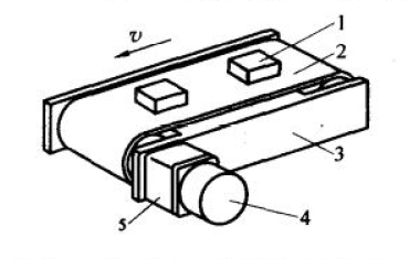1-输送皮带;2-从动轮;3-托板或托辊;4-主动轮